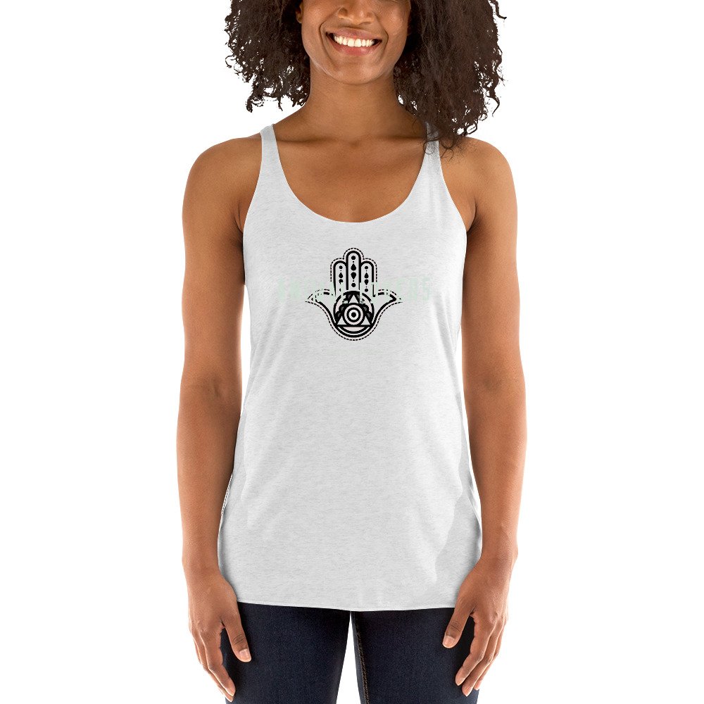 This racerback tank is soft, lightweight, and form-fitting with a flattering cut and raw edge seams for an edgy touch.